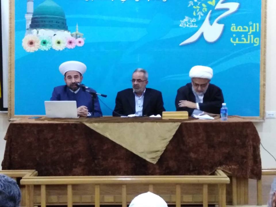 ندوة فكرية أقامها القطاع الخامس في حزب الله - بيروت ومركز الإمام الخميني (قدس سره) الثقافي ـ بيروت؛ في قاعة مدارس المهدي(عجل الله تعالى فرجه الشريف) الأوزاعي بمناسبة ولادة الرسول الأكرم(صلى الله عليه وآله) وحفيده الإمام الصادق(عليه السلام) وأسبوع الوحدة الإسلامية. حاضر فيها مسؤول مكتب الدعوة؛ عضو مجلس الأمناء في حركة التوحيد الإسلامية وإمام مسجد الخلفاء الراشدين في طرابلس سماحة الشيخ محمد الزعبي؛ وسماحة الشيخ جمال كنعان؛ وحضرها مسؤول القطاع الخامس الحاج بلال بلوط والإخوة في العلاقات العامة وفعاليات وعلماء وشخصيات دينية واجتماعية.