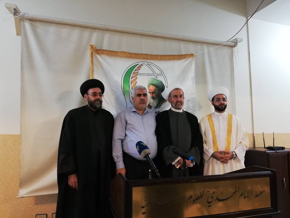تبركاً بولادة نبي الرحمة والهدى والحق محمد (صلى الله عليه وآله)، وفي أجواء أسبوع الوحدة الإسلاميّة الذي أطلقه الإمام روح الله الخميني (قدس سره)، أقام معهد الإمام المهدي(عجل الله فرجه الشريف) للعلوم الإسلاميّة ـ بيروت ومركز الإمام الخميني (قدس سره) الثقافي ـ بيروت محاضرة بهذه المناسبة العطره في قاعة المعهد "مجمع القائم (عجل الله فرجه الشريف)"، تحدث فيها سماحة الشيخ محمد عمرو "المسؤول الإعلامي والثقافي في تجمع العلماء المسلمين" حول "الوحدة الإسلامية في فكر الإمام الخميني (قدس سره)" وجاء في كلمته: لقد بين الإمام الخميني رضوان الله عليه أن الوحدة الإسلامية هي أصل قرآني وأن على المسلمين أن يكونوا يدًا واحدةً لمواجهة العدو الخارجي الذي يريد تمزيق أمتنا بالفتنة وبث الأحقاد وتكفير المسلمين بعضهم بعضًا مما يؤدي إلى اقتتالهم وسفك دماهم، وهو المهيمن على أنظمتنا العربية والإسلامية والسالب ثرواتها المتواجدة في باطن الأرض وعلى ظهرها وهوالمتحكم بسياسات حكام البلاد الإسلامية والعربية، والمتحكم باقتصادهم وامنهم وحياتهم، ويمنعها من الاتحاد الذي يشكل قوة وحصن.