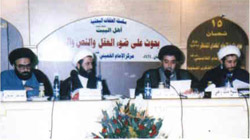 أهل البيت على ضوء العقل والنص والتاريخ الجلسة الاولى المحور الأول: الأهداف السياسية لحركات الغلو المحاضر:السيد إبراهيم أمين السيد المحور الثاني: العلم الخاص على ضوء الروايات المحاضر: السيد حيدرالموسوي المحور الثالث: حقيقة العصمة عند أهل البيت المحاضر: الشيخ مالك وهبي رئيس الجلسة: الشيخ محمد جمعة الجلسة الثانية: المحور الأول: حد الغلو (قولوا فينا ما شئتم) المحاضر: السيد مصطفى ترحيني المحور الثاني: الغلاة وطرق الدعوة المحاضر: الشيخ أمين ترمس المحور الثالث: الغلو على ضوء القرآن الكريم المحاضر: الشيخ علي خازم رئيس الجلسة: الشيخ جمال كنعان الزمان: 16 و 17 ــ 10 ــ 2003م |