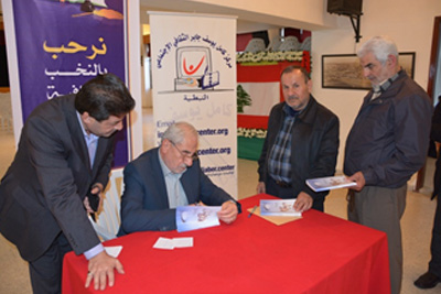 أقام مركز الإمام الخميني الثقافي في النبطية حفل توقيع كتاب "نفحات في لوحات" للسيد يوسف عباس.حضره رئيس المحاكم المدنية برنار شويري ورئيس جمعية العمل البلدي ورؤوساء بلديات ومخاتير ونخب ثقافية وعدد من أهالي المنطقة.