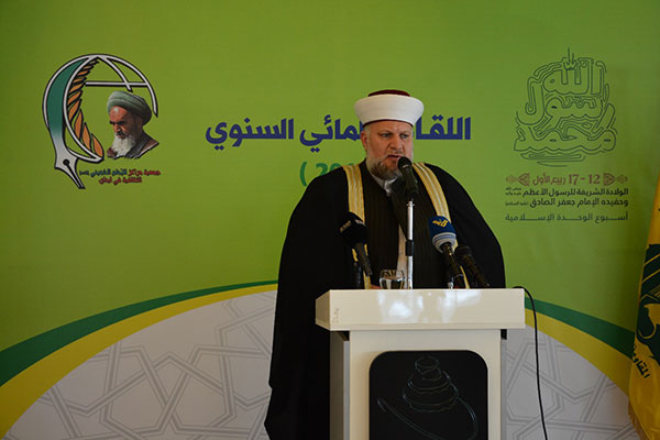 بمناسبة المولد النبوي الشريف وأسبوع الوحدة الإسلامية أقام حزب الله ومراكز الإمام الخميني في منطقة الجنوب الثانية اللقاء العلمائي السنوي برعاية رئيس المجلس السياسي في حزب الله السيد إبراهيم أمين السيد وحضور علمائي كبير تحدث فيه السيد عن تحدي التقسيم وتصفية القضية الفلسطينية وعن الوحدة الاسلامية التي طرحها الامام الخميني المقدس كحل لمواجهة أي اعتداء على الامة الاسلامية وعن أي مشروع اسلامي لا يعتبر فلسطين أولويته تحدث أمين عام الإتحاد العالمي لعلماء المقاومة الشيخ ماهر حمود وركز على العمائم العاملة المجاهدة التي هي عصب الخط الإسلامي الكبير في وجه الانحراف والظلم بالإضافة إلى مداخلات حول الوحدة الإسلامية والفلسطينية أكد بعض العلماء المشاركون إن الوحدة الإسلامية وفلسطين هي الكلمة الفصل في هذا اللقاء وكافة المشاركين أكدوا على ضرورة التضامن الكامل مع القضية الفلسطينية والتشديد على أن البوصلة الأساس هي القدس ..